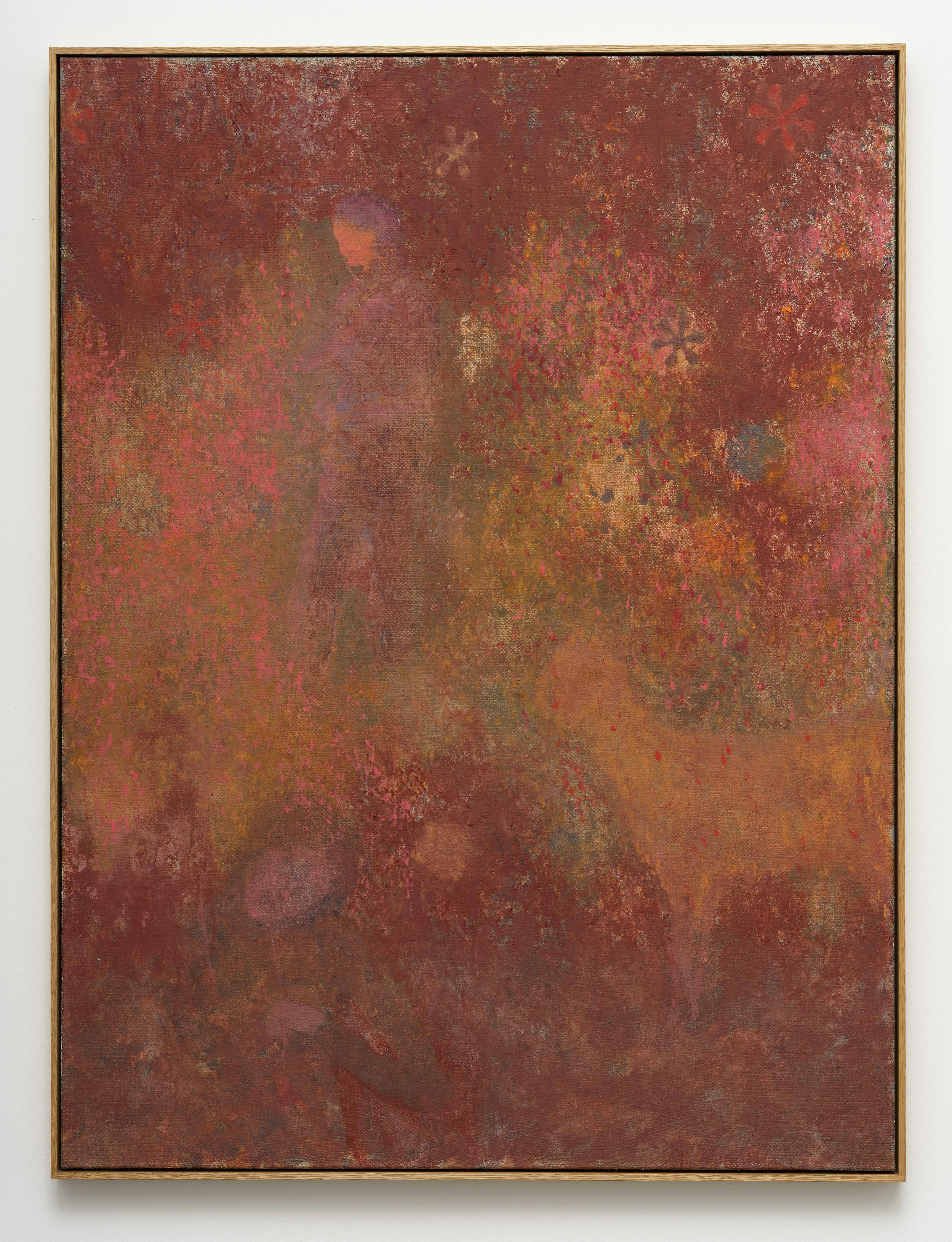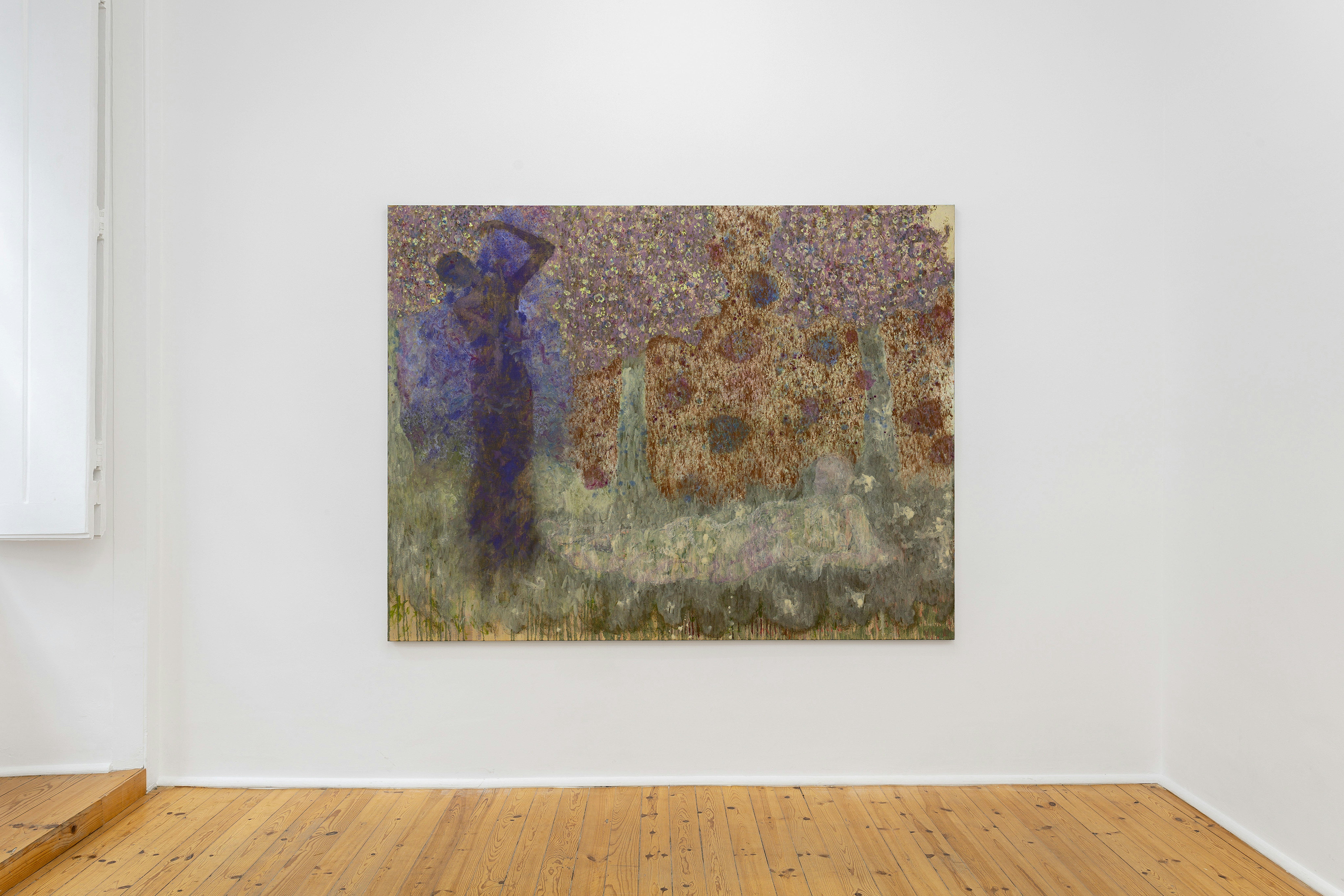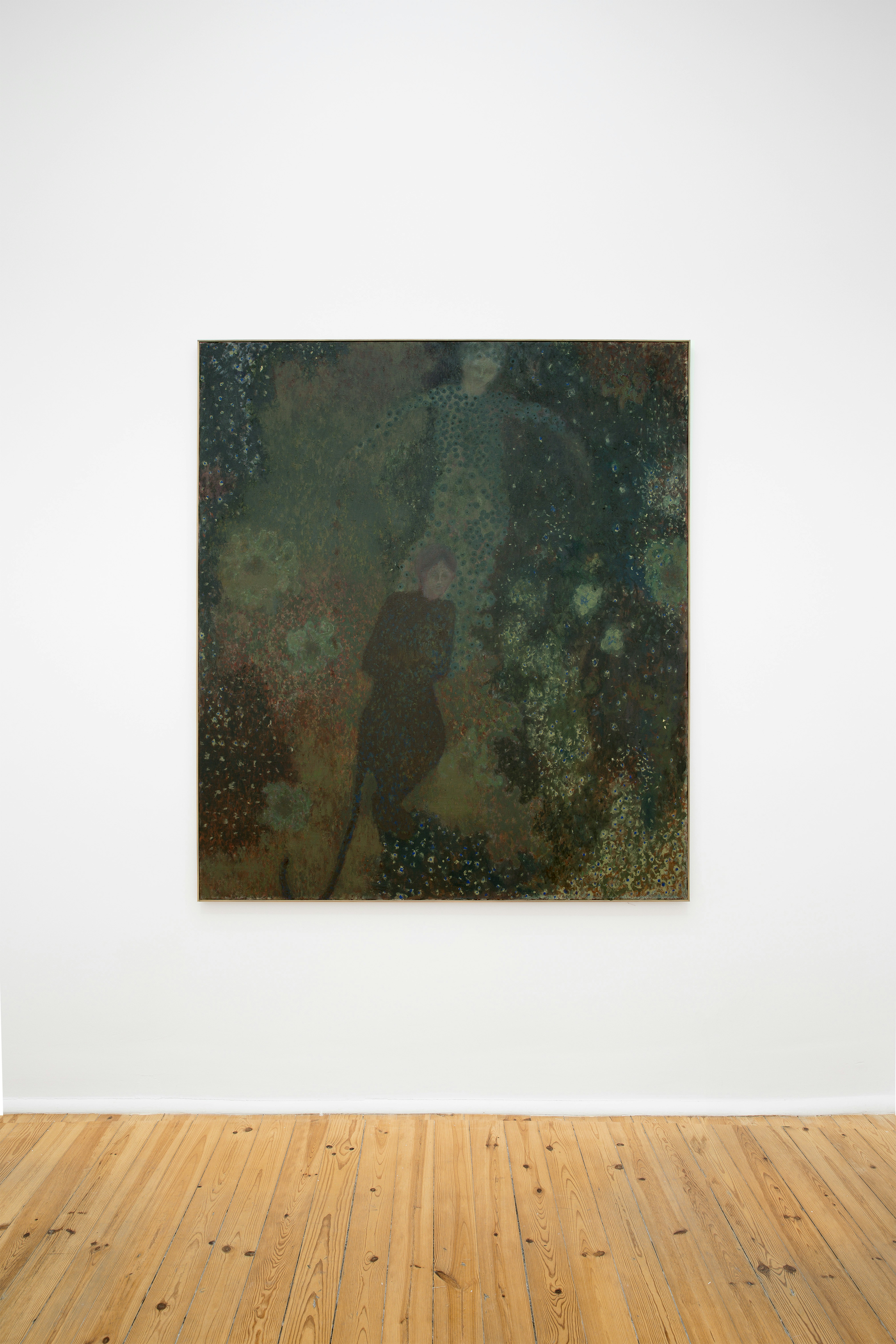 Often drawing on art historical references, Bak’s paintings contain a temporal complexity establishing the possibility of a new horizon between the past and today. Substantial chromatic backgrounds transforming into vague landscapes inhabited by human figures, animals and natural objects. The interplay between his beings and their environments are deliberately blurred, weaved together by a glow or its opposite, as if to point at the social and psychological contractions of the characters as symbolic gestures. The material processes and layers are pulling the imagery farther away from the source material and into its own reality, where narratives unfold untroubled by a lyricism of the past. Bak’s motifs suggest a take on the romantic, but one that is muted by internalised emotion and expression - a calm dramatics, searching for a point where the figures are equally emerging from and camouflaged by their surroundings, protected and empowered, muted but screaming.