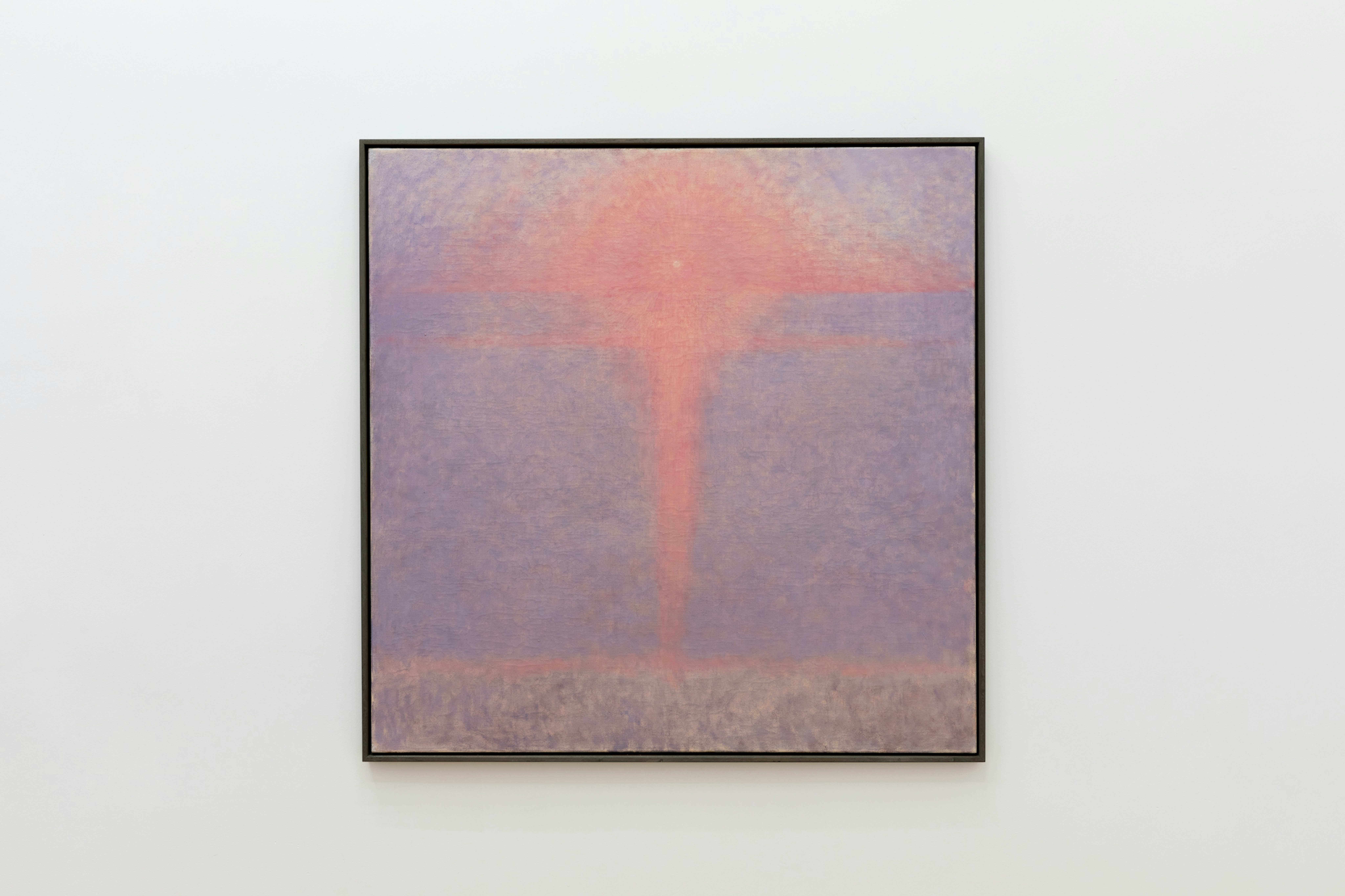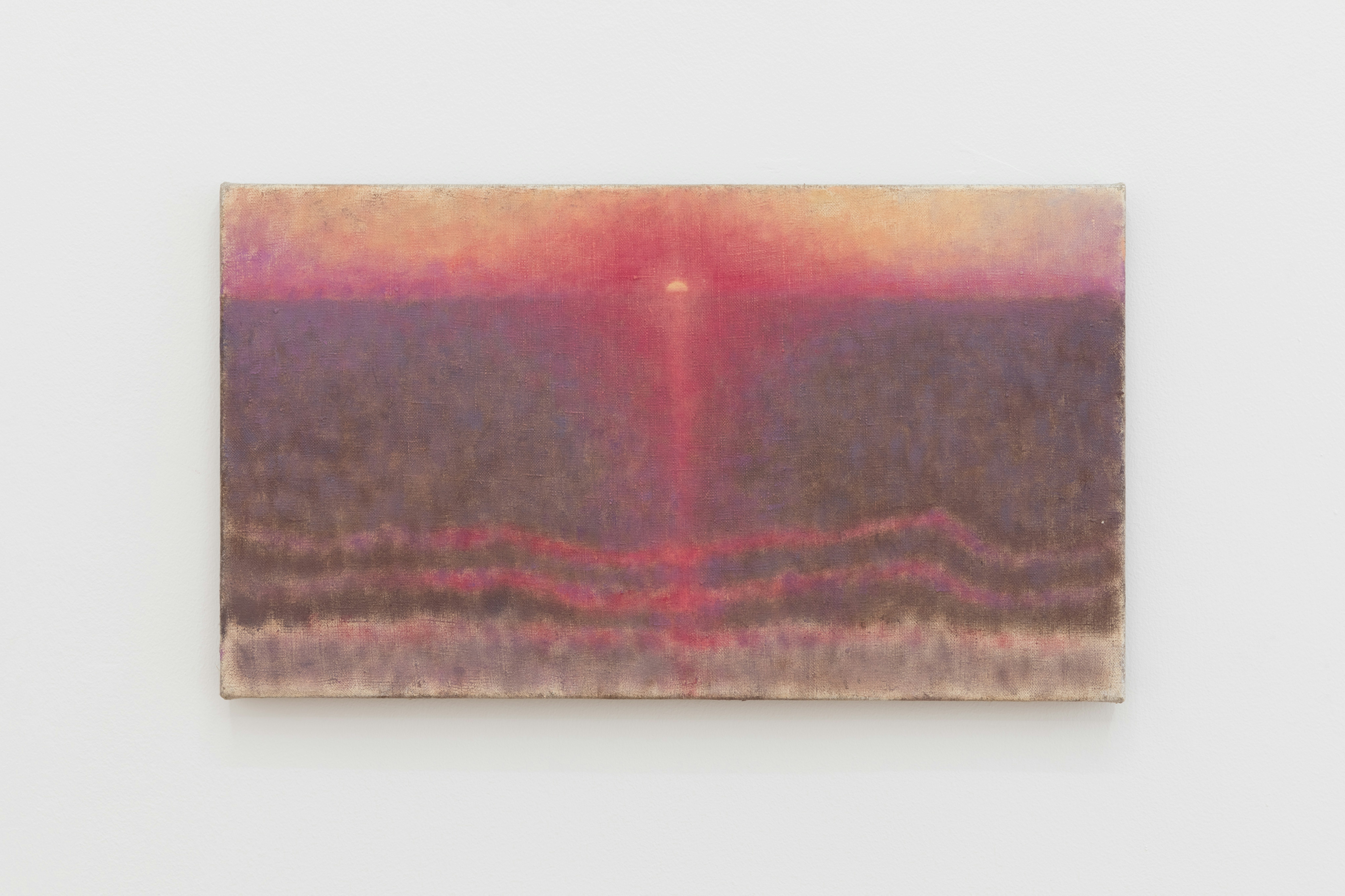 In the wake of his grandfathers death last year, Anders Davidsen started painting seascapes. In particular, a sun setting beyond the roiling seaside horizon. He gifted a painting to his grandmother as consolation, to bring back memories, times shared fishing and swimming in a nearby fjord in northern Denmark. The more he painted, the greater his fixation would become – each painting taking on a life of its own, coming with an added recollection from his childhood observing subtle shifting patterns of light onto water. He's continued to paint this phantom seascape, hooked, reeling back to the pervading colours his reverie and memory invent, finding solace as so many of us do in the collision of light, air and water.