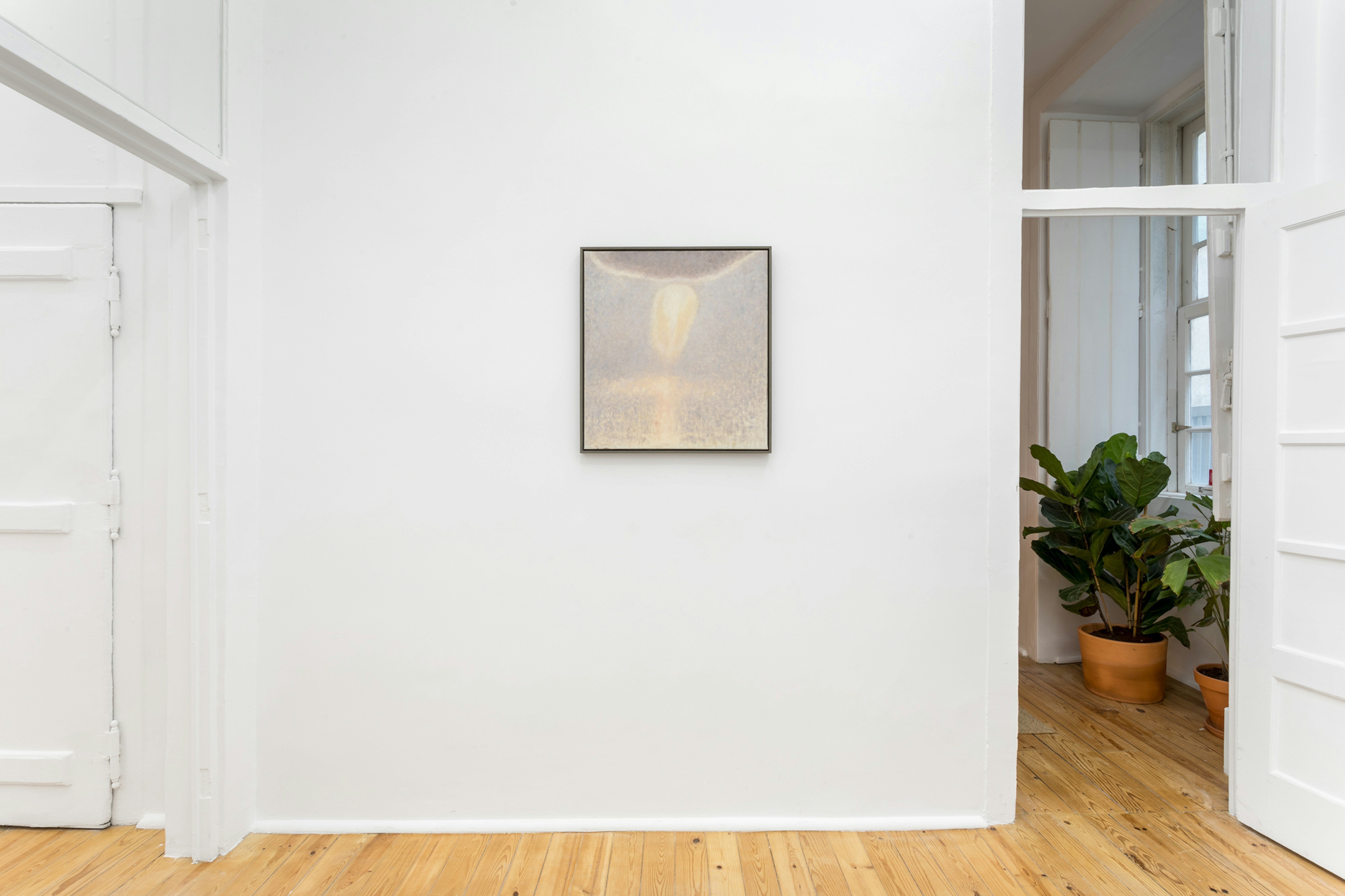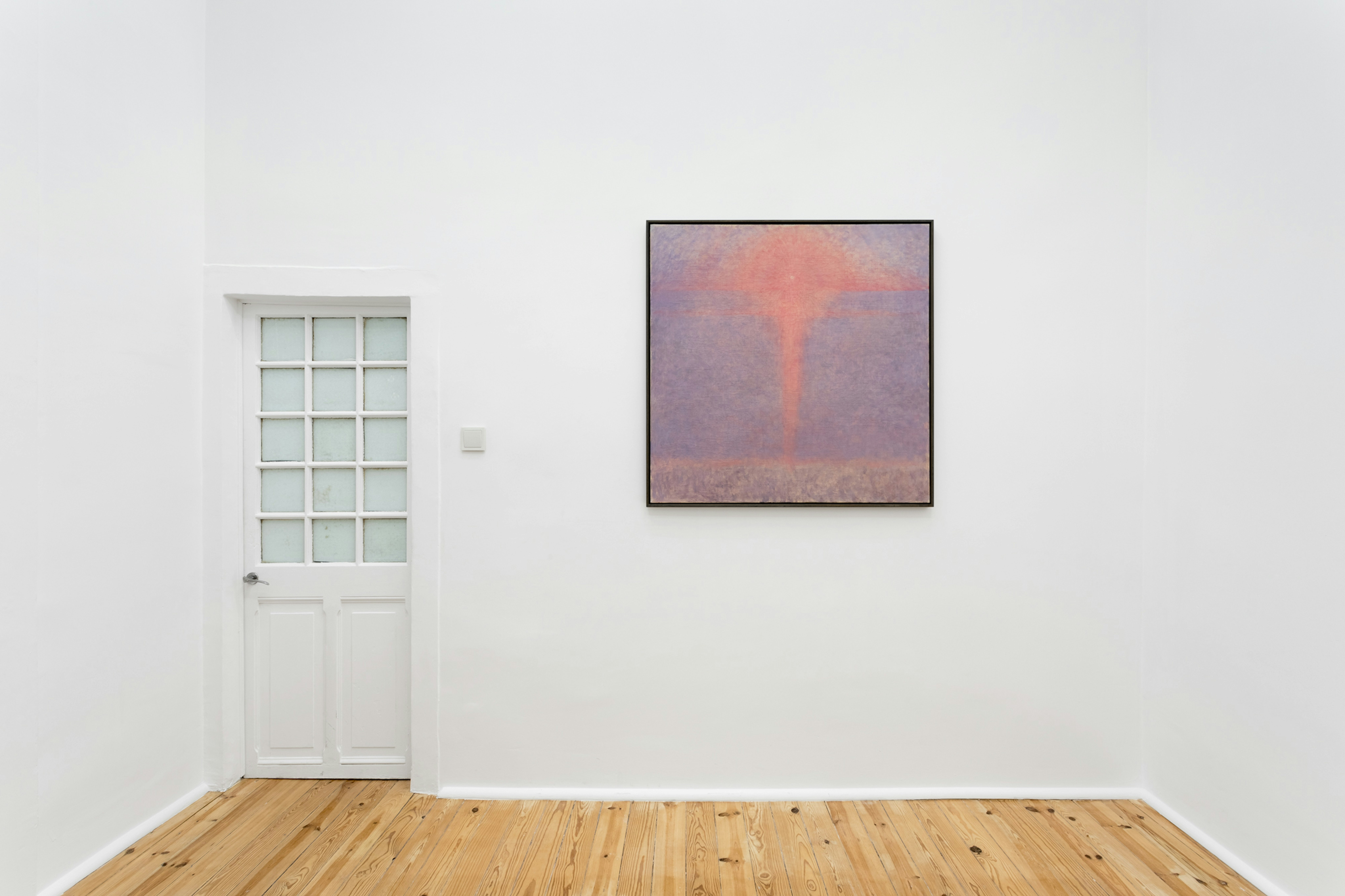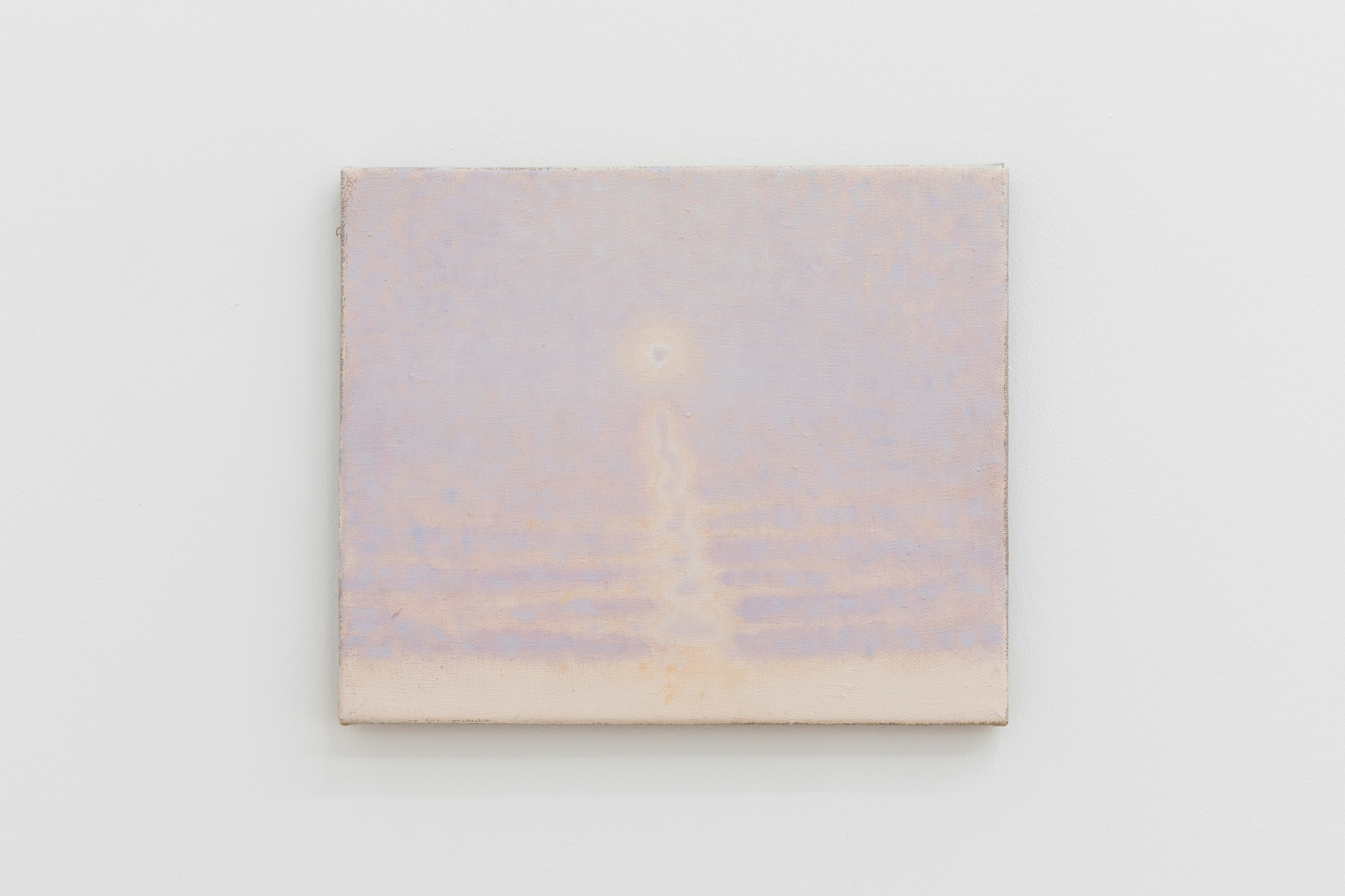 Surprisingly, he begins his paintings unceremoniously with muddy brown undercoats, to further deepen the surface. It’s only after many layers on top do the images start to dance in spangles of movement. In the red-hued paintings, the sun's glitter looks as if it’s been daubed on with his hands, Anders likening it to an epithet he recalls in Homer’s ancient poem ‘The Odyssey’: ‘rose-fingered dawn’, describing how sunlight touches everything you see. Homer also wrote of the 'wine-dark sea' – that, too, is how it can look to Anders, glassily opaque. In the more muted paintings, there are chimes of Belgian painter Luc Tuymans; a subtle glow buzzing behind clouds of greys and purples. The diluted and bleached colours make the pictures seem like overexposed photographs – the blanches in Anders’ paintings further accentuating the textural linen behind. He consciously avoids overworking or ladening the canvas with too much paint, leaving some pockets of weft more visible. Like the vast oceans Anders paints, he prefers a seemingly endless possibility of ebbs and flows, the visible and the absent.