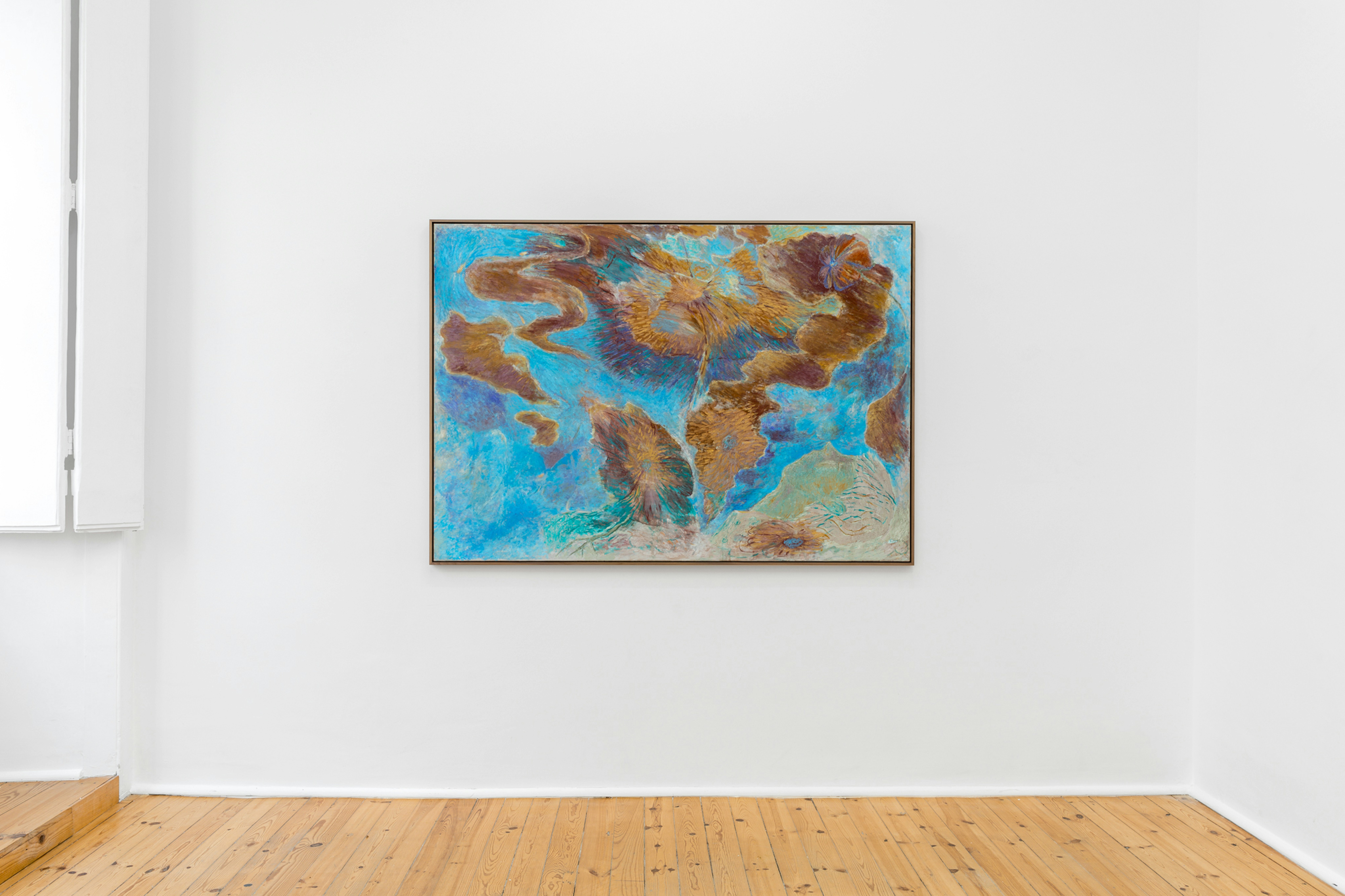 Whoever meddles, whoever tries to dive with their eyes into the deepest layers of paint finds vibrations of colour, details in a continuous motion. By continually applying layers, Bobek lets the failures alchemise, and so they sediment into something that constitutes the seen painting almost as ‘the thing that never was.’ And then comes the coloured figures, the characters observing and inhabiting these worlds where; “Everything is blooming most recklessly; if it were voices instead of colours, there would be an unbelievable shrieking into the heart of the night.” A quote by Rainer Maria Rilke, so befitting it seems to encompass all the tingling and unnerving sensed through the series that makes Cradle Orchestra.