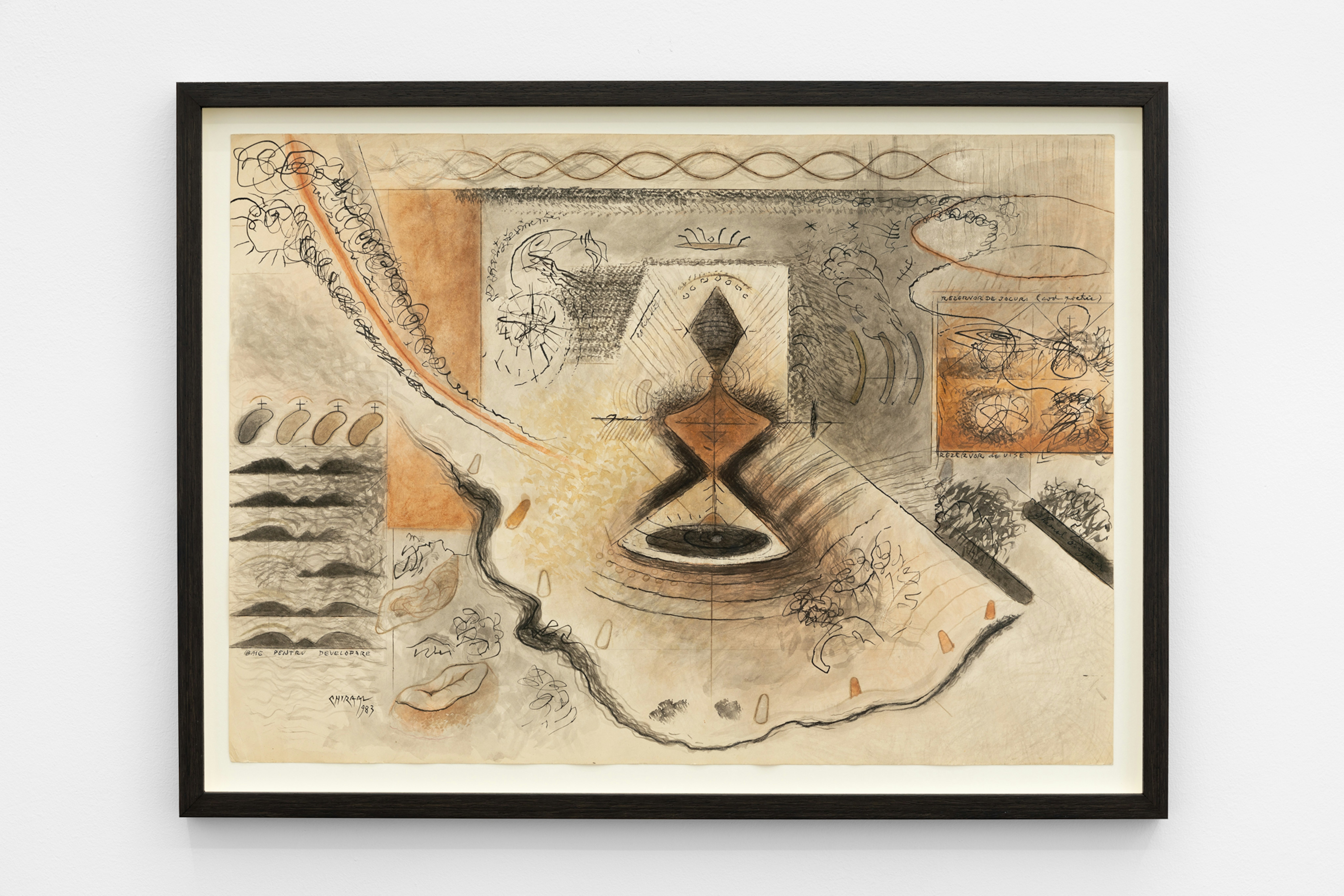 Alexandru Chira, was born in 1947 in a tiny Transylvanian village near Cluj. He attended art school in Cluj and then the Fine Arts Institute in Bucharest. His home village Tăușeni suffered from a long drought. Chira began to intensively develop a quasi-magical system through which extreme weather situations could be acted upon. He withdrew completely into a visionary inner world to design a landscape monument that would serve as a cosmic-energetic receiving and transmitting station and symbolic totemic arrangement to mysteriously affect weather phenomena and soil conditions. Completely obsessed with this task, he neglected family and friends to develop a hardly intelligible visual language necessary for it in sketches, drawings, paintings, and sculptures.