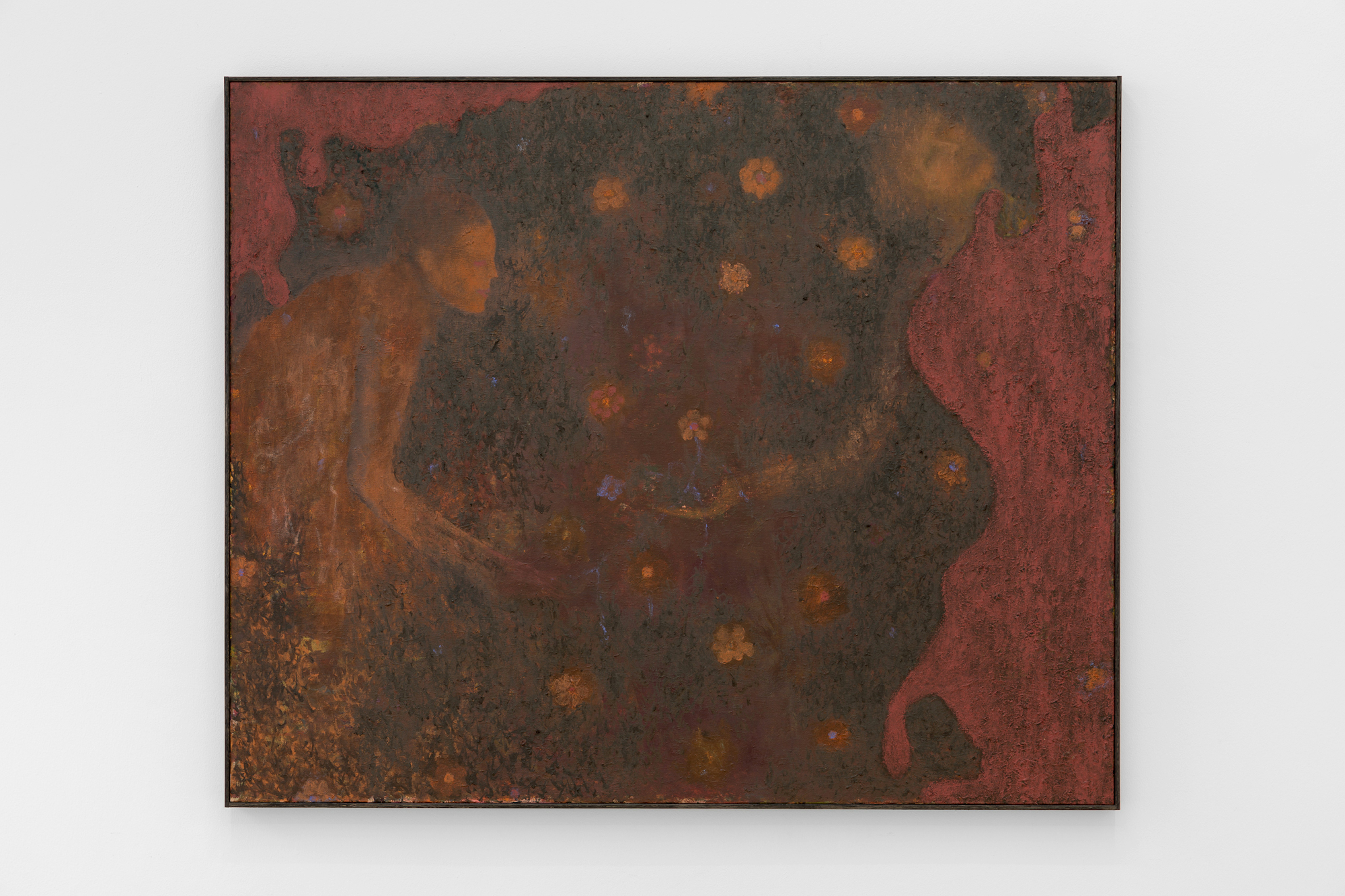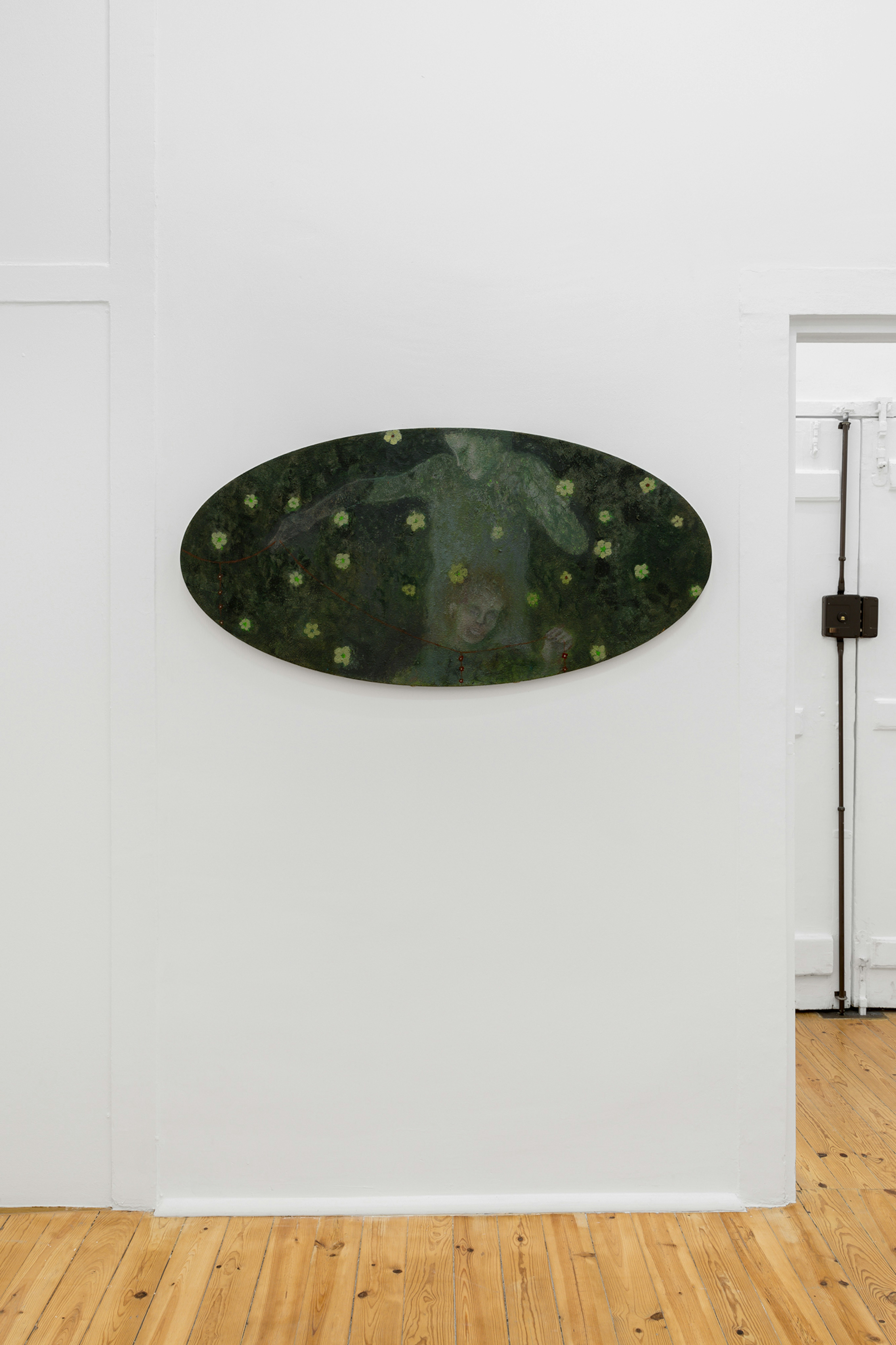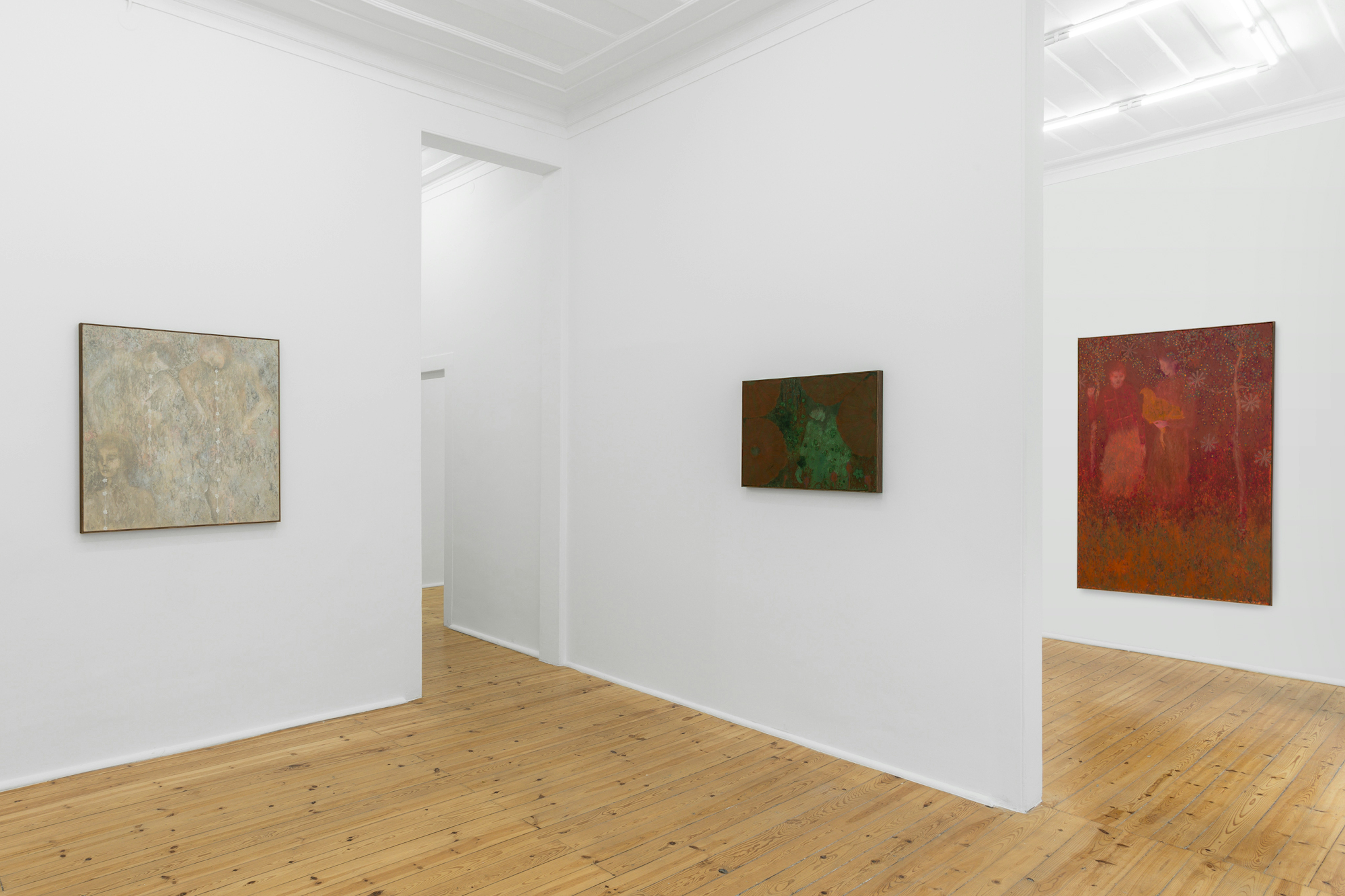 Often drawing on art historical references, Bak’s paintings contain a temporal complexity establishing the possibility of a new horizon between the past and today. Substantial chromatic backgrounds transforming into vague landscapes inhabited by human figures, animals and natural objects. The interplay between his beings and their environments are deliberately blurred, weaved together by a glow or its opposite, as if to point at the social and psychological contractions of the characters as symbolic gestures. The material processes and layers are pulling the imagery farther away from the source material and into its own reality, where narratives unfold untroubled by a lyricism of the past. Bak’s motifs suggest a take on the romantic, but one that is muted by internalised emotion and expression - a calm dramatics, searching for a point where the figures are equally emerging from and camouflaged by their surroundings, protected and empowered, muted but screaming.